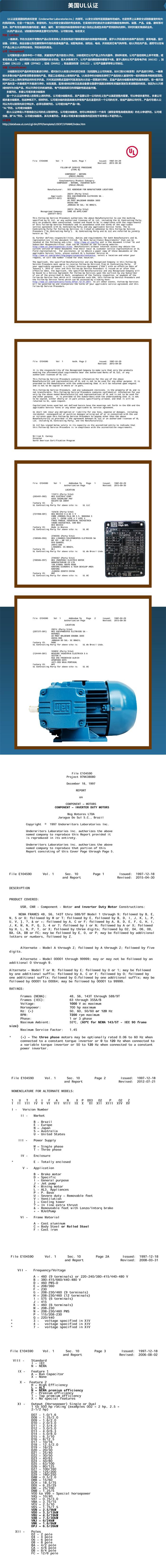 WEG電機生產(chǎn)的UL認證電機符合UL認證標準,WEG生產(chǎn)的UL認證電機具有著低噪音、低震動、效率高、兼容WEG變頻器等特點,我們銷售的電機享受WEG質(zhì)保18月的服務。